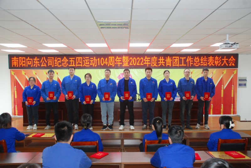為進(jìn)一步學(xué)習(xí)貫徹黨的二十大精神,公司團(tuán)委于4月28日上午在向東工業(yè)園召開紀(jì)念五四運動104周年暨2022年度共青團(tuán)工作總結(jié)表彰大會。共青團(tuán)工作總結(jié)表彰大會。黨委書記姜華、各黨支部書記、團(tuán)支部書記以及來自公司70余名團(tuán)員青年參加了大會。會議由黨群工作部副部長丁玲主持。