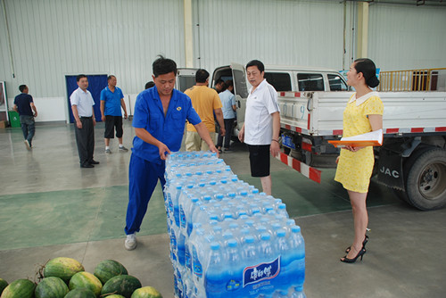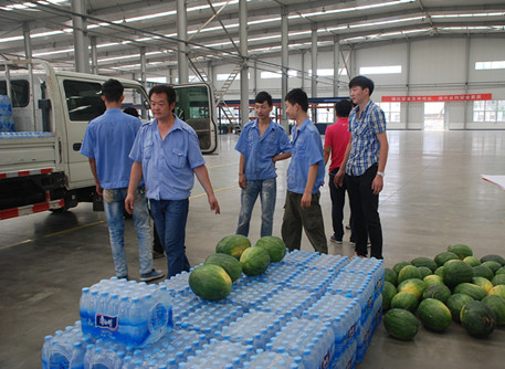 公司工會副主席王友志、女工委主任丁玲及工會工作人員,分別到南陽向東機(jī)電公司、工程公司、精鑄公司、十二分廠、十三分廠、動能分廠及北方向東三分廠、九分廠、十一分廠等單位,為一線生產(chǎn)職工帶去絲絲清涼和滴滴關(guān)愛,為他們送去了西瓜、綠豆、白糖、礦泉水、板藍(lán)根顆粒、下火茶等防暑降溫物品,送去公司的關(guān)懷和慰問。他們每到一處都與職工進(jìn)行親切交流,希望大家在炎熱的夏季里做好暑期各項(xiàng)安全生產(chǎn)工作。
