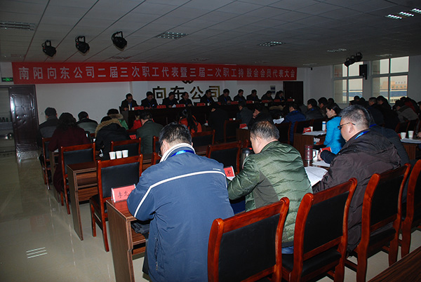 2月20日,南陽向東機械工業(yè)有限公司二屆三次職工代表暨三屆二次職工持股會會員代表大會在南陽向東工業(yè)園四樓會議廳隆重召開。會議聽取并審議通過了總經理喬新濤代表公司所作的《創(chuàng)新工作?真抓實干?努力開創(chuàng)企業(yè)生產經營工作新局面》行政工作報告。聽取了總會計師丁玨所作的《2015年公司業(yè)務招待費使用情況的報告》。工會副主席王友志宣讀了《南陽向東機械工業(yè)有限公司二屆三次職工代表暨三屆二次職工持股會會員代表大會會議決議》。